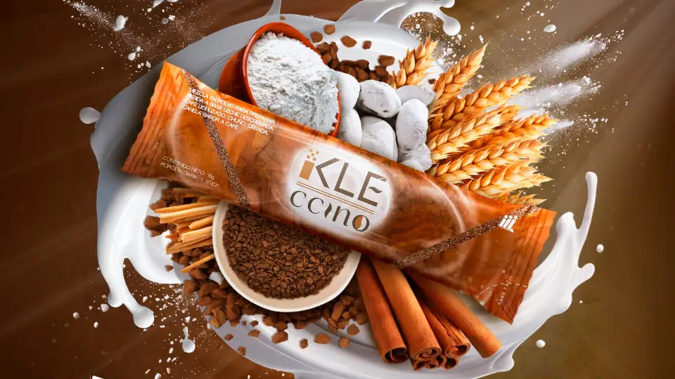 K-LE Ccino es un capuccino premium en formato stick, formulado con ingredientes como leche descremada, café liofilizado, cebada, canela y chuño, pensado para acompañar tu rutina diaria con sabor, nutrición y una experiencia diferente.